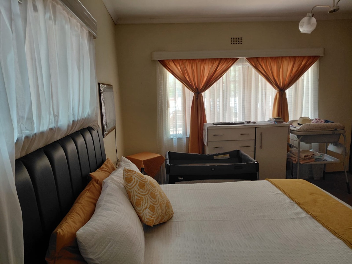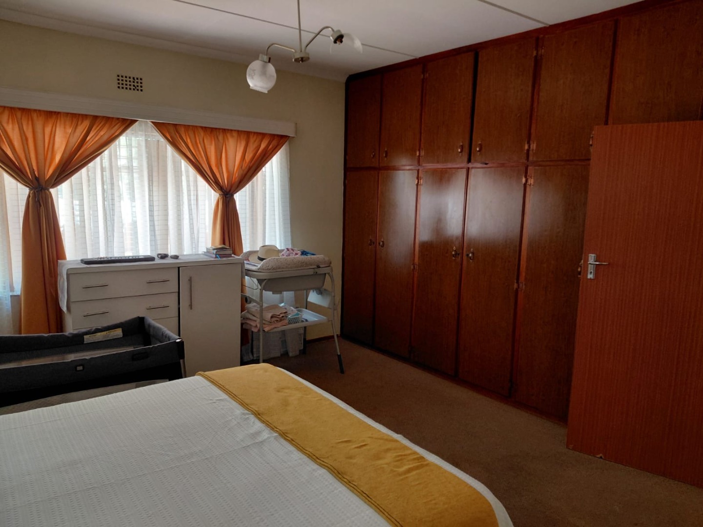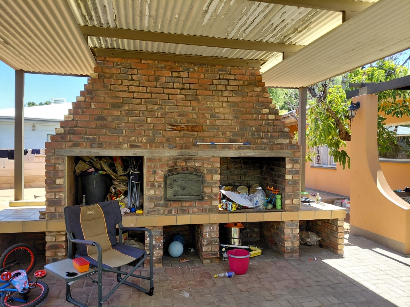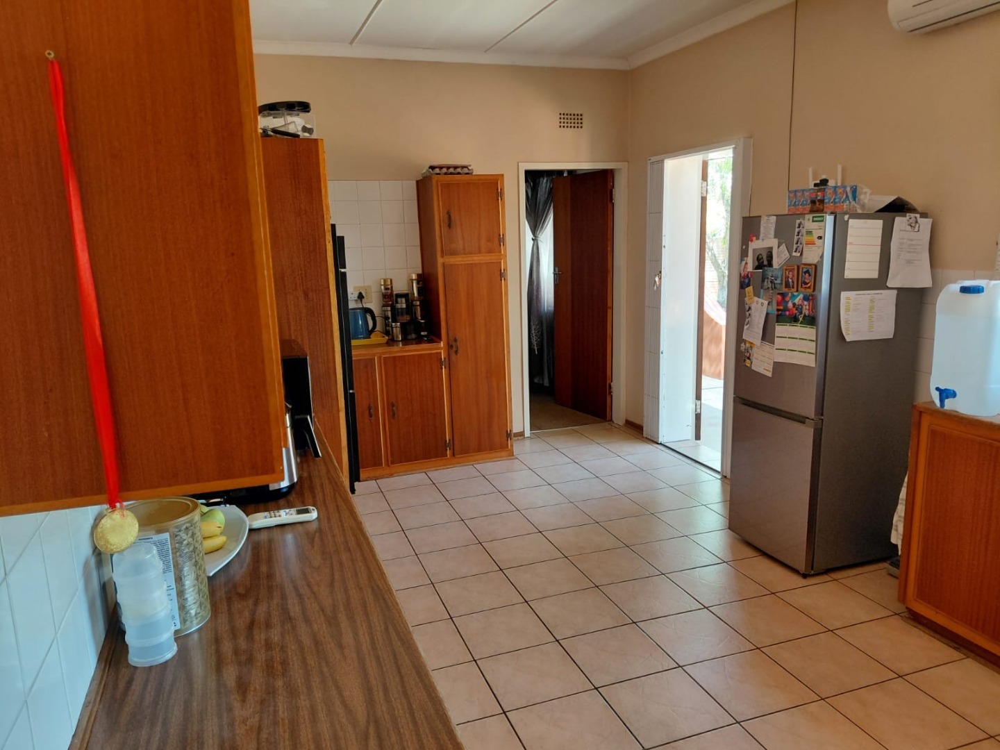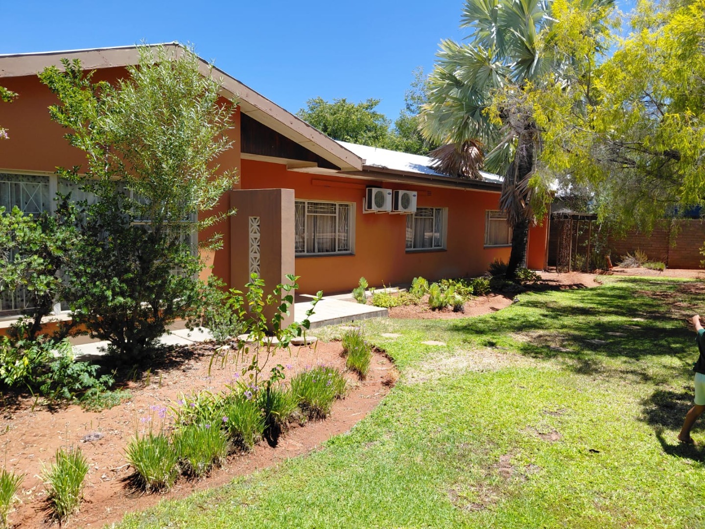 Discover this charming 4-bedroom, 2-bathroom family home located in the established suburb of Oosterville, Upington, South Africa. Presenting a welcoming kerb appeal, the single-story residence features an attractive orange/terra cotta facade, complemented by a lawn and mature trees that provide natural shade. A paved driveway leads to a convenient double garage, ensuring ample parking and storage.